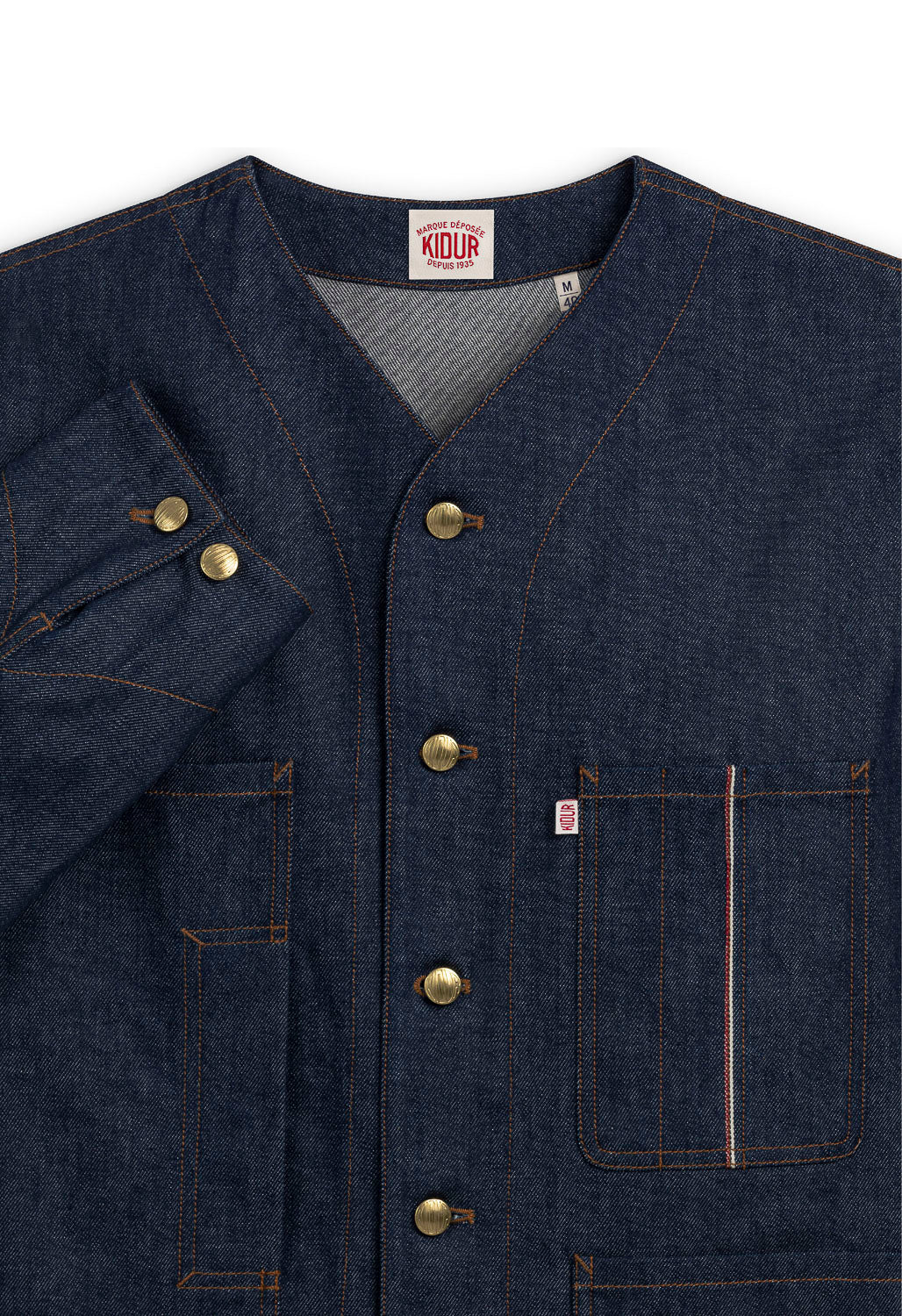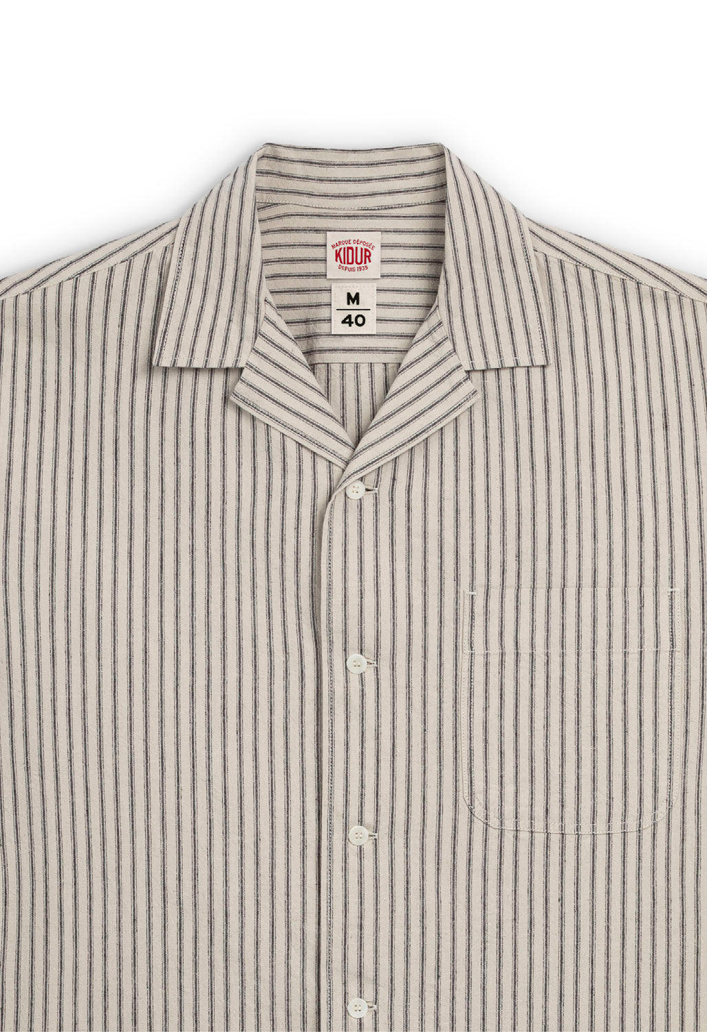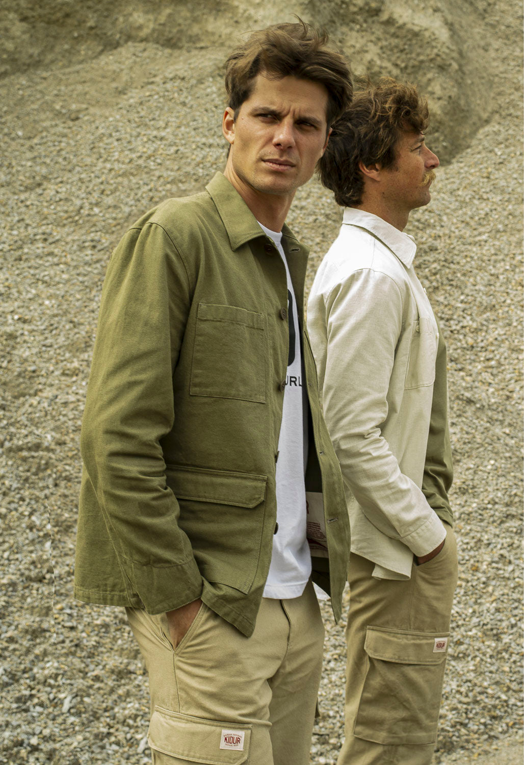 Les pantalons et vestes cargo, aux poches à soufflet savamment étudiées, redéfinissent le workwear avec une silhouette affirmée, adaptée aux exigences du quotidien. Le trench RG, aux lignes droites et à la toile déperlante, s’impose comme l’allié des journées incertaines. La chemisette Gasoline, inspirée des uniformes de pompistes, fait son entrée dans le vestiaire Kidur avec son charme brut et authentique.