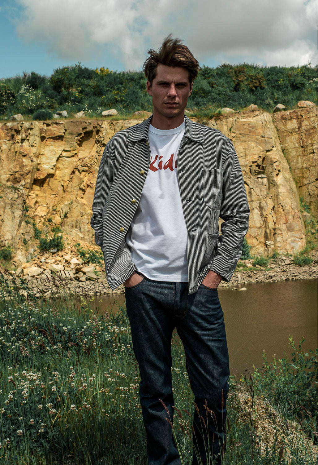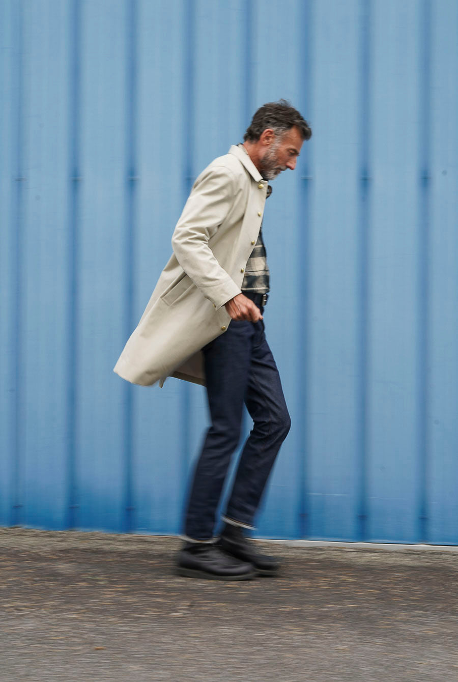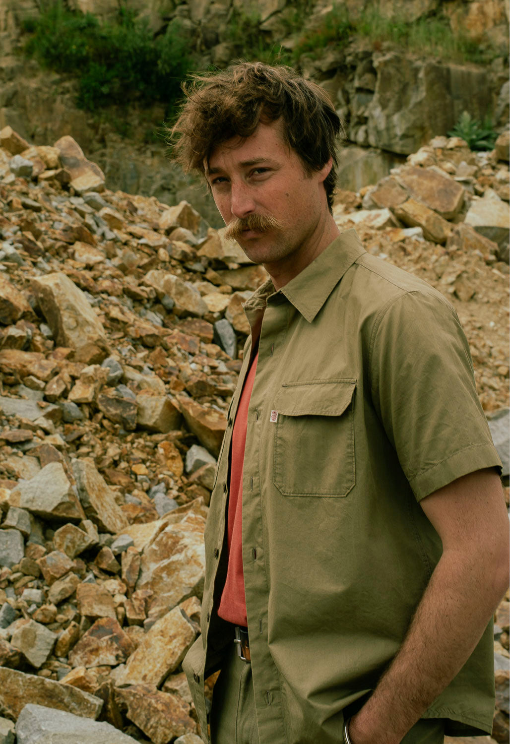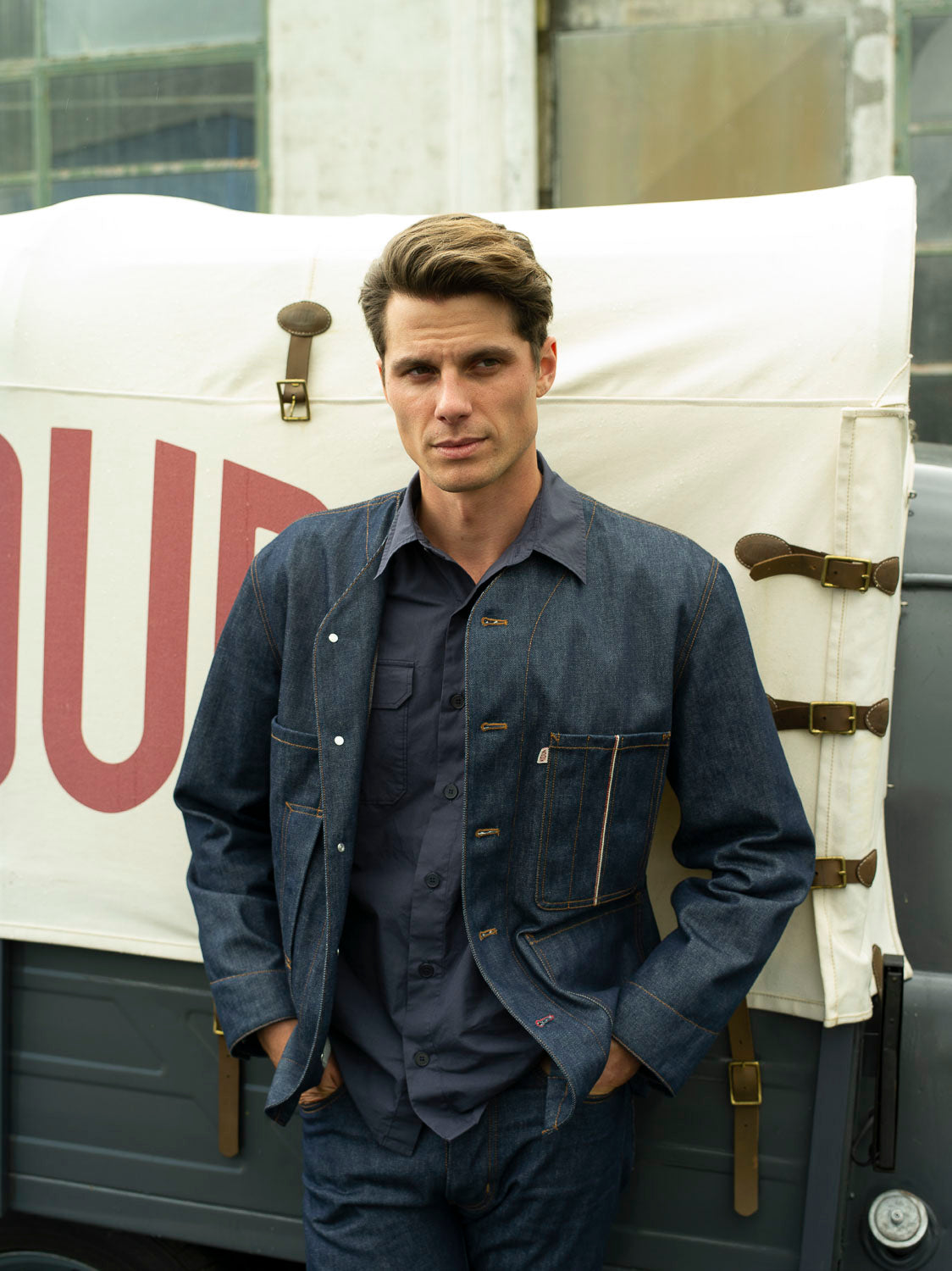 Les pantalons et vestes cargo, aux poches à soufflet savamment étudiées, redéfinissent le workwear avec une silhouette affirmée, adaptée aux exigences du quotidien. Le trench RG, aux lignes droites et à la toile déperlante, s’impose comme l’allié des journées incertaines. La chemisette Gasoline, inspirée des uniformes de pompistes, fait son entrée dans le vestiaire Kidur avec son charme brut et authentique.