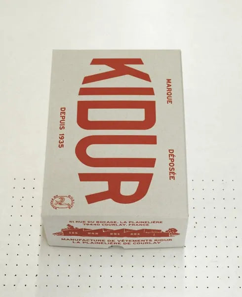 Kidur est alors proposé au plus grand nombre, via une collection de vêtements faits en France, à Courlay, dans l’atelier d’origine.