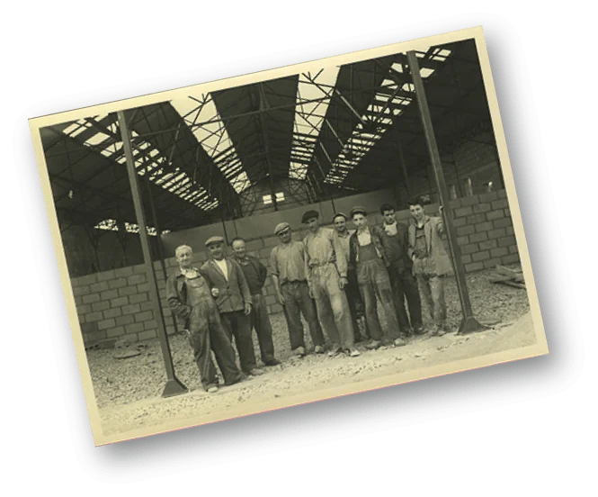 C’est l’année où tout commence. De retour de service militaire, Juste Lucain Husseau et René Moynaton s’associent pour acquérir une parcelle de terrain à La Plainelière de Courlay dans les Deux-Sèvres. Sur cette parcelle, ils construisent un premier bâtiment (qui existe toujours) pour y loger des métiers à tisser. L’activité démarre alors avec la réalisation de matières premières simples, toiles et sergés de coton.